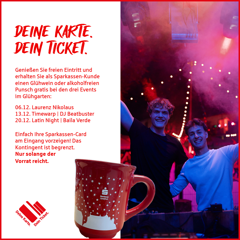 Mit der Kooperation der Sparkasse Landshut wird der Glühgarten diesen Winter zu einem echten Highlight in Landshut und Umgebung. Einfach kommen, genießen und de tolle Atmosphäre erleben!