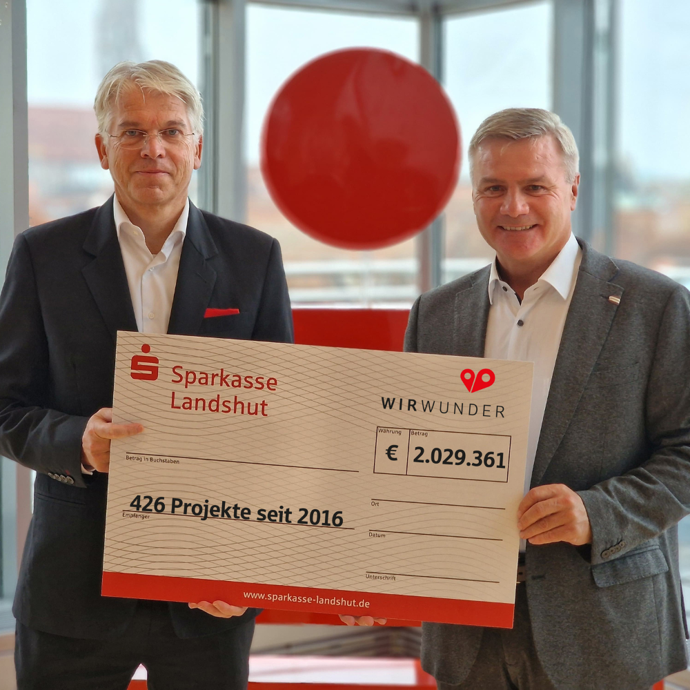 WirWunder ist die zentrale Spendenplattform der Sparkassen. Sie wird in Kooperation mit betterplace.org, der größten deutschen Online-Spendenplattform für soziale Projekte, betrieben. Jede Sparkasse präsentiert auf einer eigenen, regionalen Website diverse Initiativen aus ihrem Geschäftsgebiet. Für Vereine und Organisationen bedeutet das eine digitale Bühne, um ihre Arbeit sichtbar zu machen und unkompliziert Spenden zu sammeln. Spenderinnen und Spendern bietet die Plattform eine einfache Abwicklung, sichere Spendenwege und eine automatisch generierte Spendenbescheinigung. Die Sparkasse Landshut nutzt WirWunder aktiv, um ihre regionale Verantwortung zu stärken und stellt durch regelmäßige Spendenmarathons jährlich rund 50.000 Euro zur Verfügung.